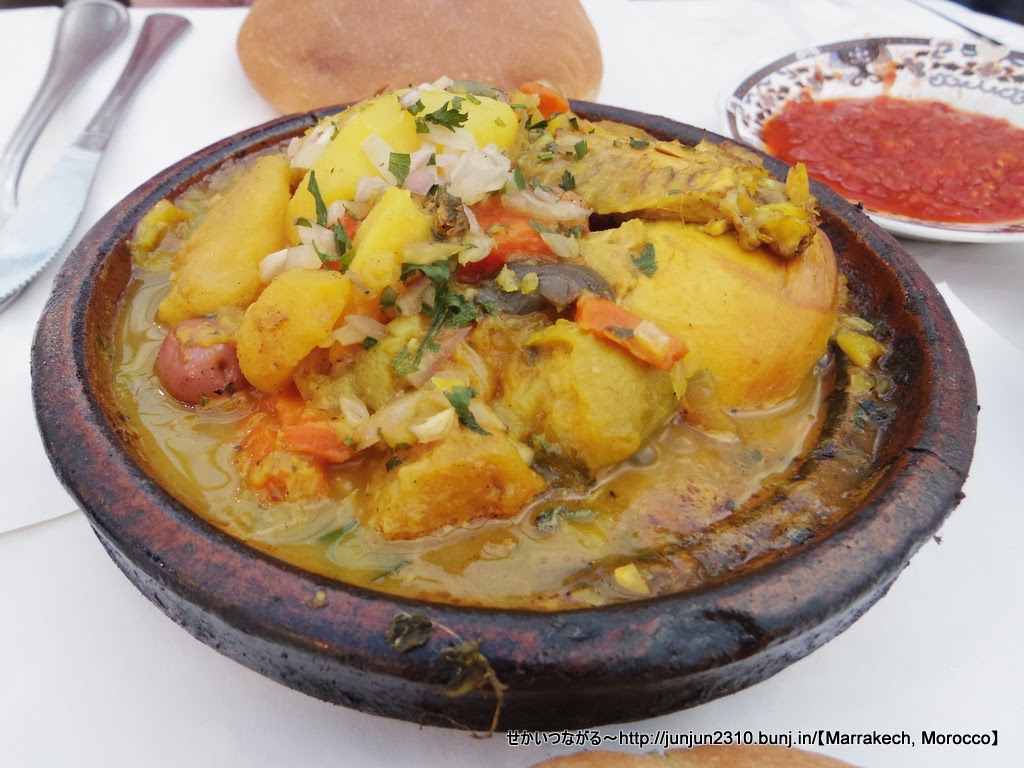 タジン、サラダ、パンで25DH(≒300円)。