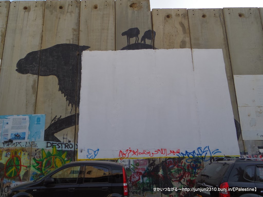 Banksyの作品もこの壁がなくなる希望を託すべく、